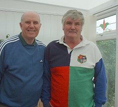 Hi Dick,I thought that perhaps you would like to put this small article and pictures on the site relating to a visit to my home to see Jill my wife and myself of two great friends from the past. Firstly we had Ken and Judy who now live in France and were over here visiting family and friends. Ken (Myatt) later changed his name to Hayward, was in J/Wing 55-58 and was in Barham House. Ken's instrument was French Horn and was in the class above me the time I was on Horn. From that time we became great friends, we both loved our sport, Ken was a great Cross Country Runner and myself a Sprinter plus we loved all other sports, Ken, later, near the end of his training decided to change over to General Duties. After J/Wing I went to HMS Vincent Band then onto HMS Tiger 61-63, after leaving the Tiger I went into the Staff Band and Ken then returned from serving in Singapore where he landed in the flat above me at the top of Drum Hill in Deal where Jill my wife and his wife Judy became close and firm friends, in that we are God-Parents to their oldest son as they are to our youngest daughter. We always talk a lot about old times and Ken wondered if anybody remembers him from J-Wing and as I said before he was in Barham House, if anybody has any old house photo's from 55-58 he would love to see them. What a wonderful weekend we had altogether, we have been friends now for about 47 years and we have had wonderful visits together especially when we visited them in their home in France, Great Wine! I am sending you a photo taken of us together in my home. |