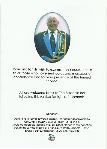 for Peter at the Crematorium in Truro on Wednesday 29th June.